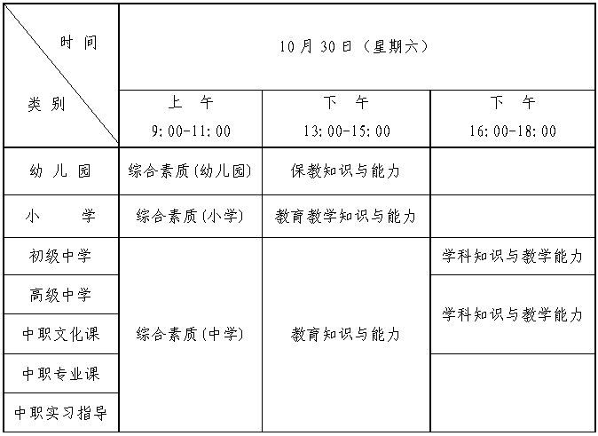 (一)全國中小學(xué)教師資格考試(筆試)日期為2021年10月30日,具體時(shí)間安排如下: