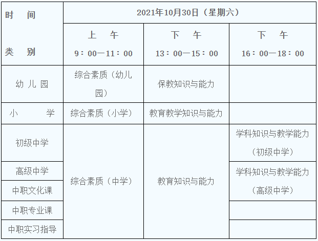 (二)根據《教育部教師工作司關于中小學教師資格考試增加“心理健康教育”等學科的通知》(教師司函〔2017〕41號)和《教育部教師工作司關于中小學教師資格考試增加“特殊教育”等學科的通知》(教師司函〔2019〕51號),中小學教師資格考試初中、高中、中職文化課類別面試增設“心理健康教育”、 “日語”、“俄語”、“特殊教育”等學科,新增學科的筆試科目三《學科知識與教學能力》結合面試一并考核。