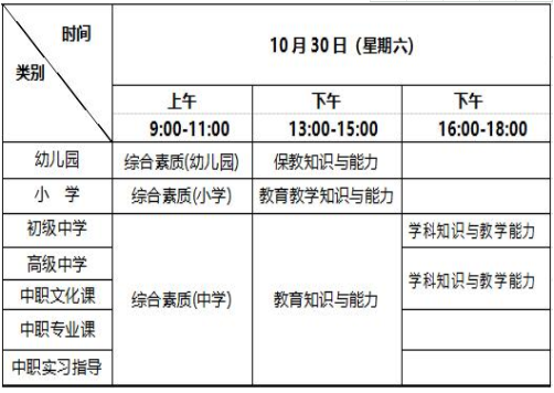 表 1 中小學(xué)教師資格考試各科目考試時(shí)間