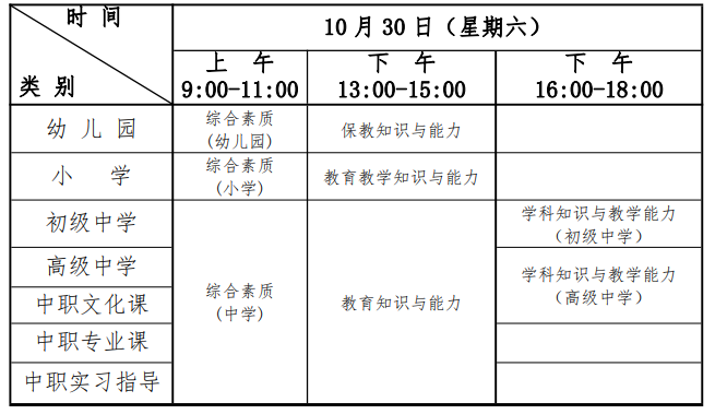 注:1.初級中學學科知識與教學能力科目為:語文、數學、 英語、物理、化學、生物、道德與法治、歷史、地理、音樂、體育與健康、美術、信息技術、歷史與社會、科學等 15 個學科。