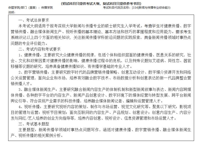 以上就是研線網(wǎng)小編整理了“2021考研大綱:深圳大學(xué)334新聞與傳播專業(yè)綜合能力2021年碩士研究生招生入學(xué)考試大綱”的內(nèi)容,更多考研大綱,請多多關(guān)注!