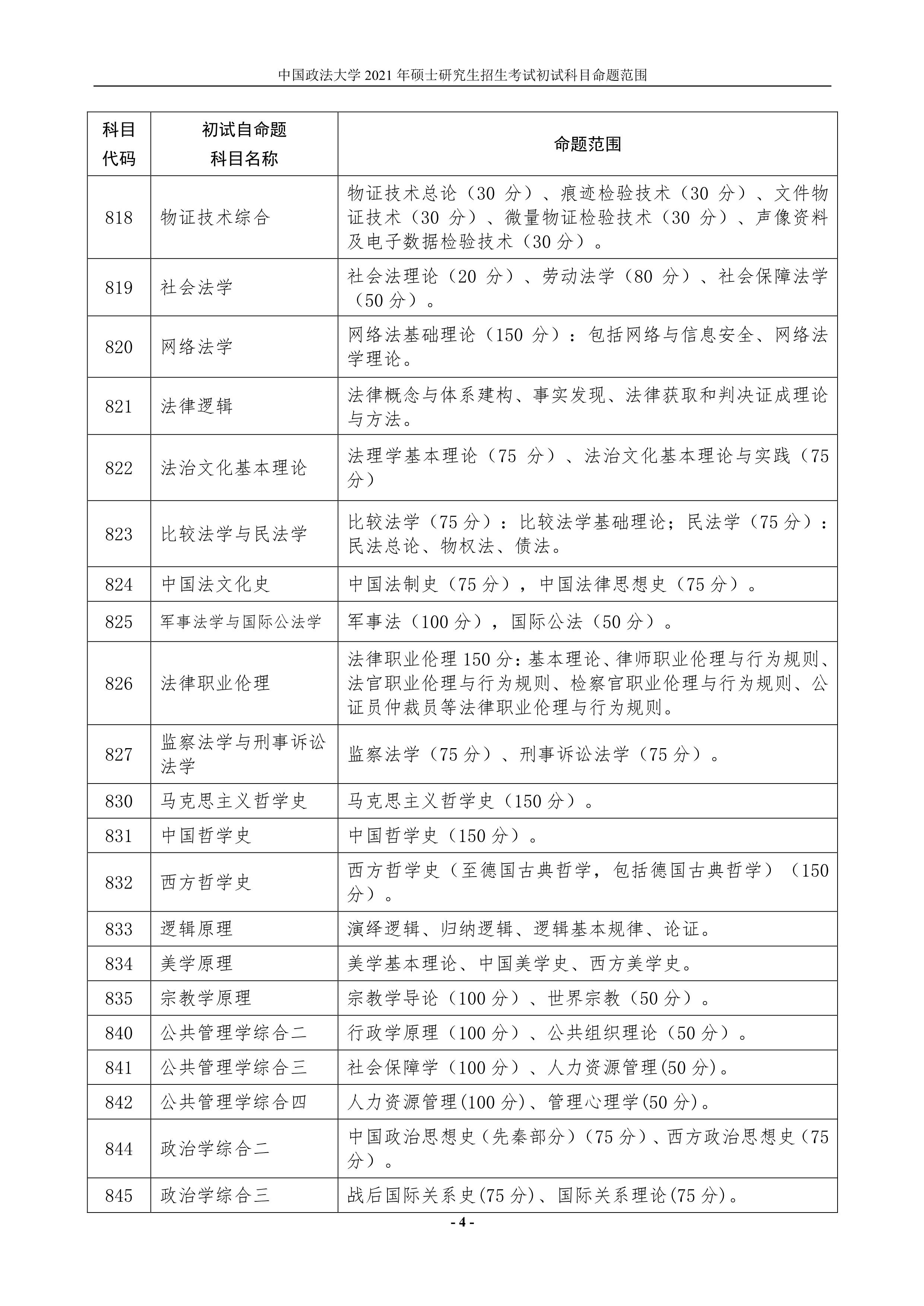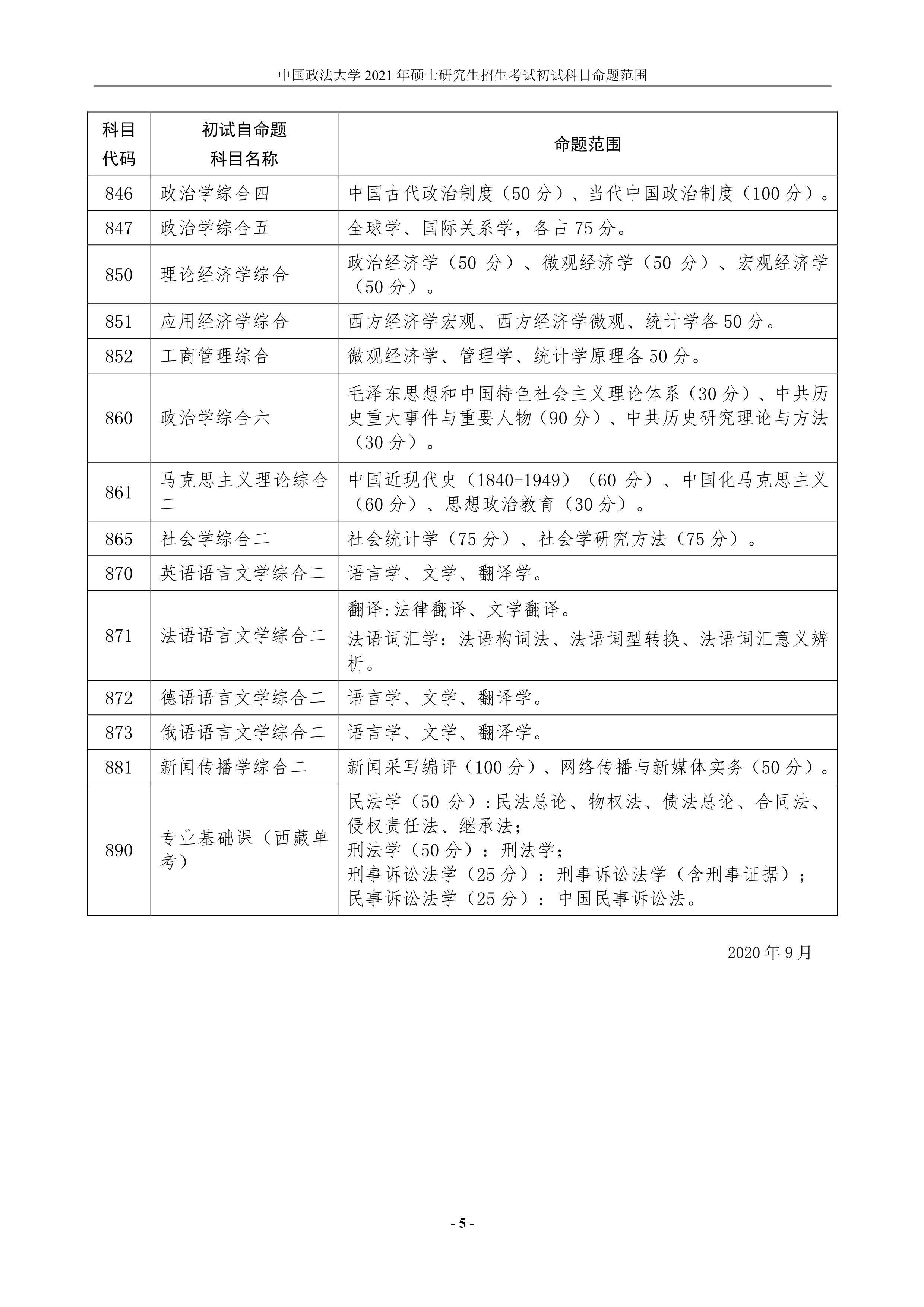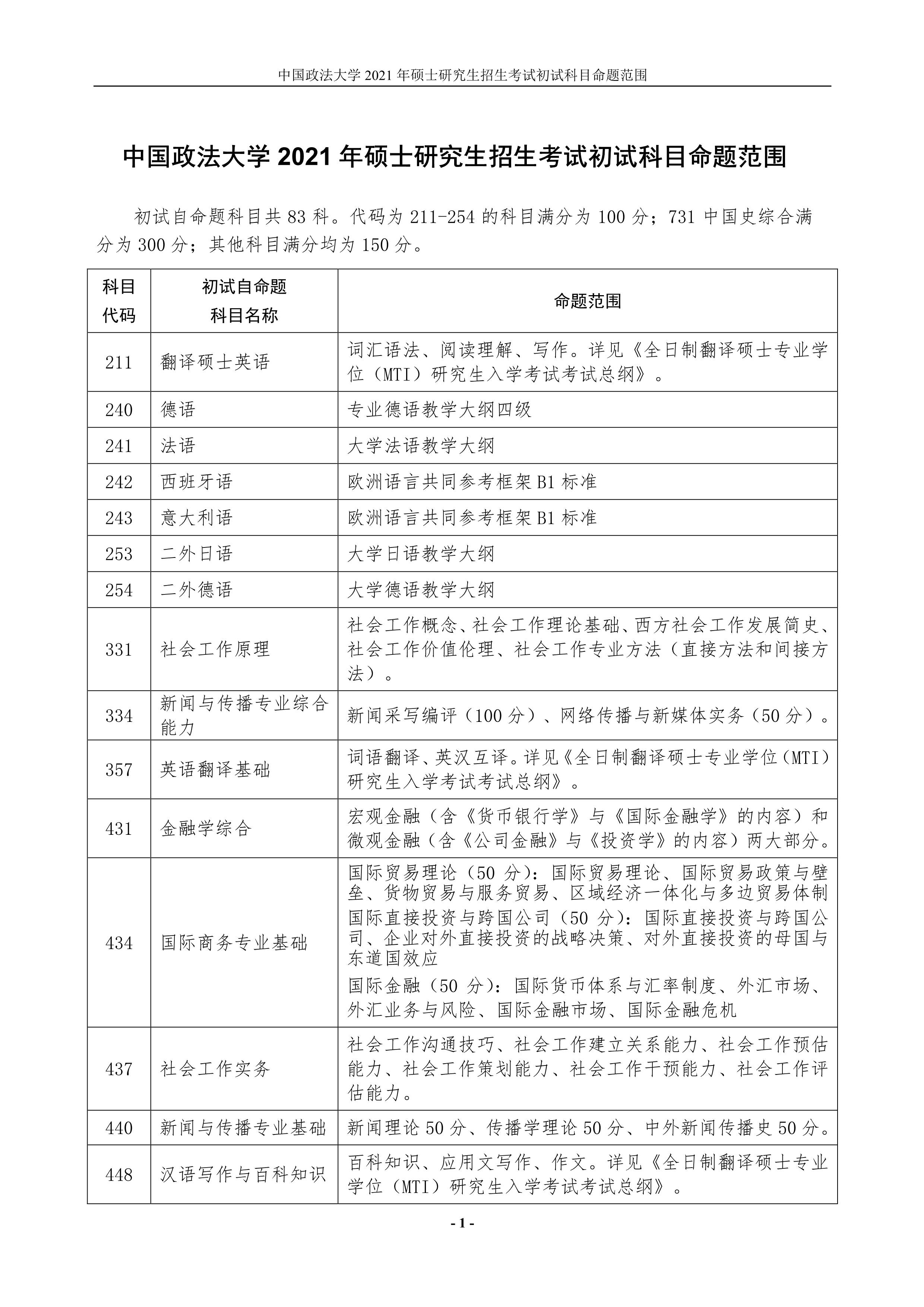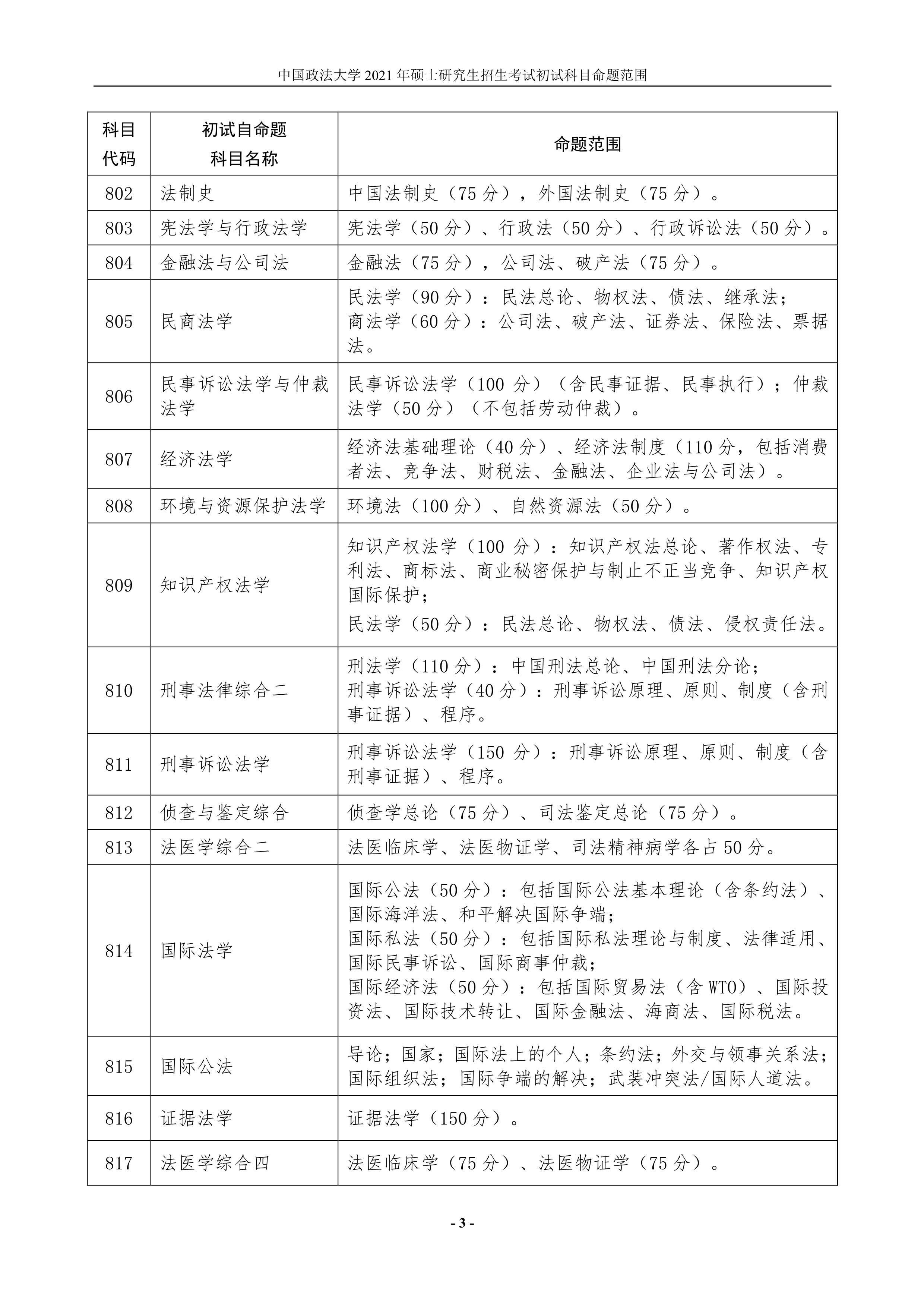 點擊查看:中國政法大學2021年碩士研究生招生考試初試科目命題范圍.pdf