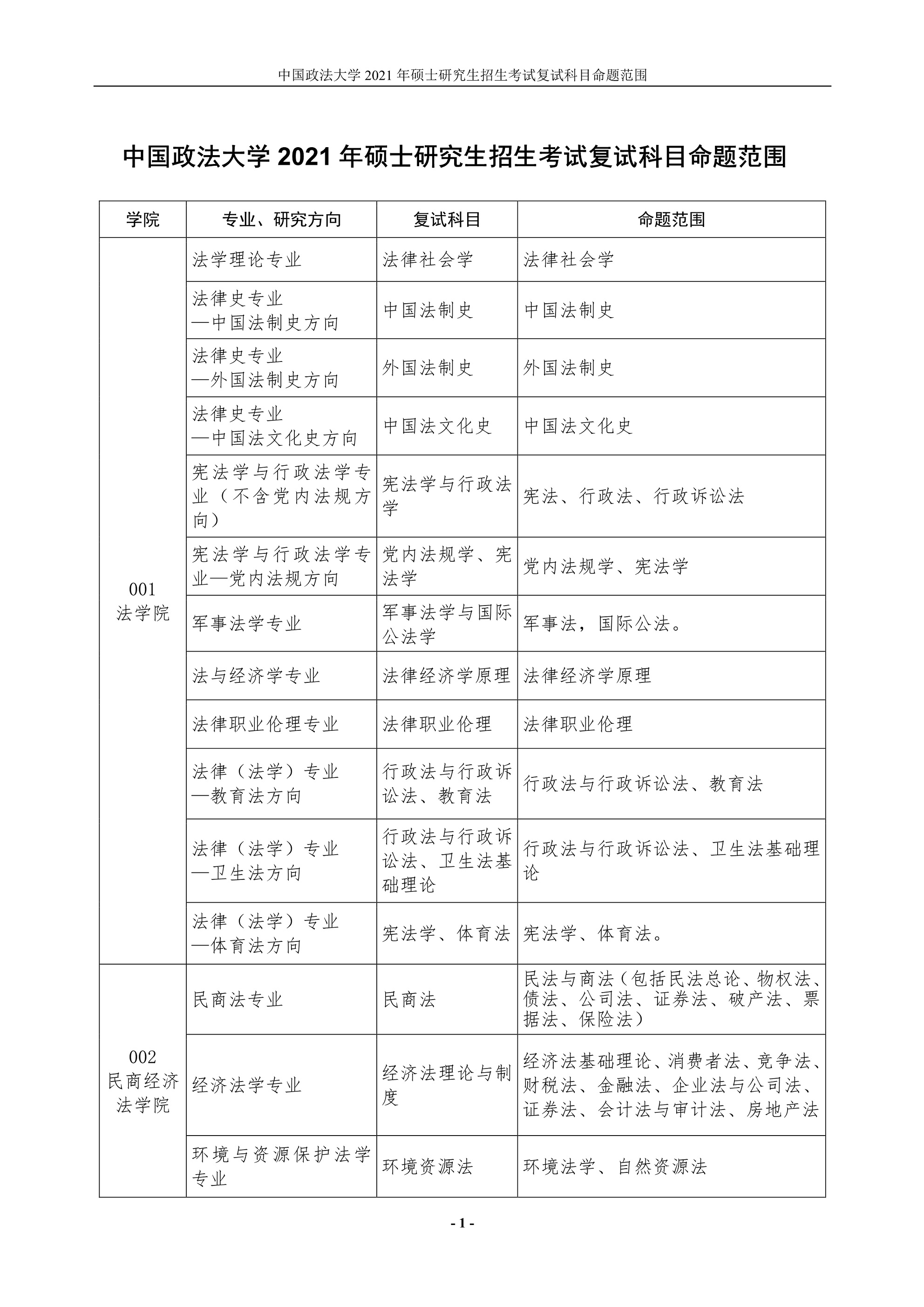 點擊查看:中國政法大學2021年碩士研究生招生考試復試科目命題范圍.pdf