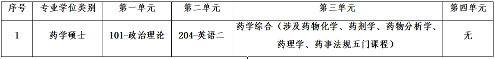 1. 藥學碩士專業學位碩士研究生入學考試初試科目設置一覽表