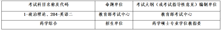 附件2:藥學碩士專業學位入學考試初試科目命題及考試大綱編制單位一覽表