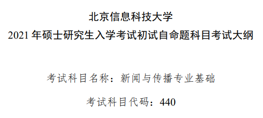 以上就是“2021考研大綱:北京信息科技大學新聞與傳播專業基礎2021年碩士研究生入學考試初試自命題科目考試大綱及參考書目”的全部內容,更多考研大綱信息,請多多關注!