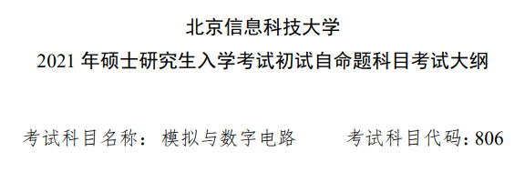 上就是“2021考研大綱:北京信息科技大學模擬與數字電路2021年碩士研究生入學考試初試自命題科目考試大綱參考書目”的全部內容,更多考研大綱信息,請多多關注!