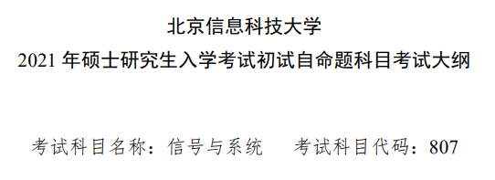 上就是“2021考研大綱:北京信息科技大學信號與系統2021年碩士研究生入學考試初試自命題科目考試大綱參考書目”的全部內容,更多考研大綱信息,請多多關注!