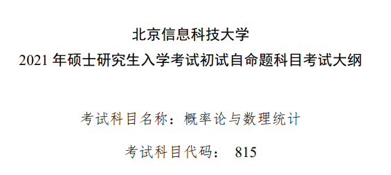 2021考研大綱:北京信息科技大學(xué)概率論與數(shù)理統(tǒng)計(jì)2021年碩士研究生入學(xué)考試初試自命題科目考試大綱及參考書(shū)目
