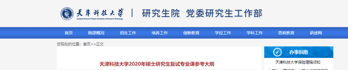 2021考研復(fù)試大綱:天津科技大學(xué)2020年碩士研究生復(fù)試專(zhuān)業(yè)課參考大綱