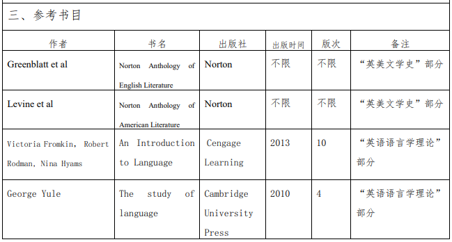 “英美文學史”部分的考試將采用主觀題與客觀題相結合的方式,包括填空(或選擇) 、簡答和詳答題三部分。試題總分為 150 分,大致均攤于各部分。“英語語言學理論”部分的試題滿分為 150 分,主要為簡答題,共 4-6 題,每題 25-40 分。如果試卷結構有所變化,不再另行通知。