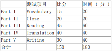 測試形式是:三篇文章,每篇文章的長度約 400 詞 , 每篇文章下面設若干問題,要求考生根據文章的內容和問題要求 ,回答所設問題。本部分共 45 分,考試時間為 60 分鐘。