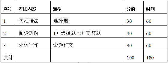 本考試包括以下部分:詞匯語法、閱讀理解、外語寫作等??偡譃?00分。