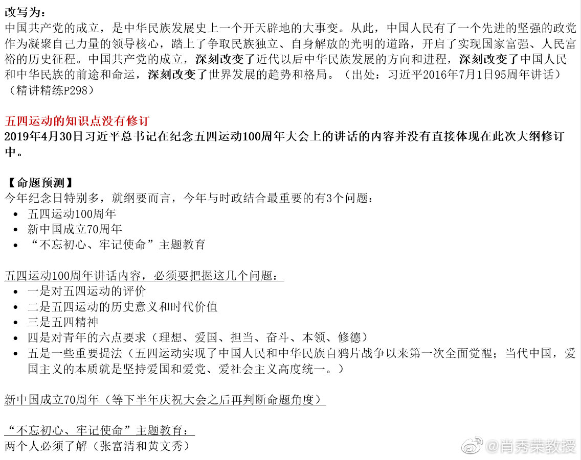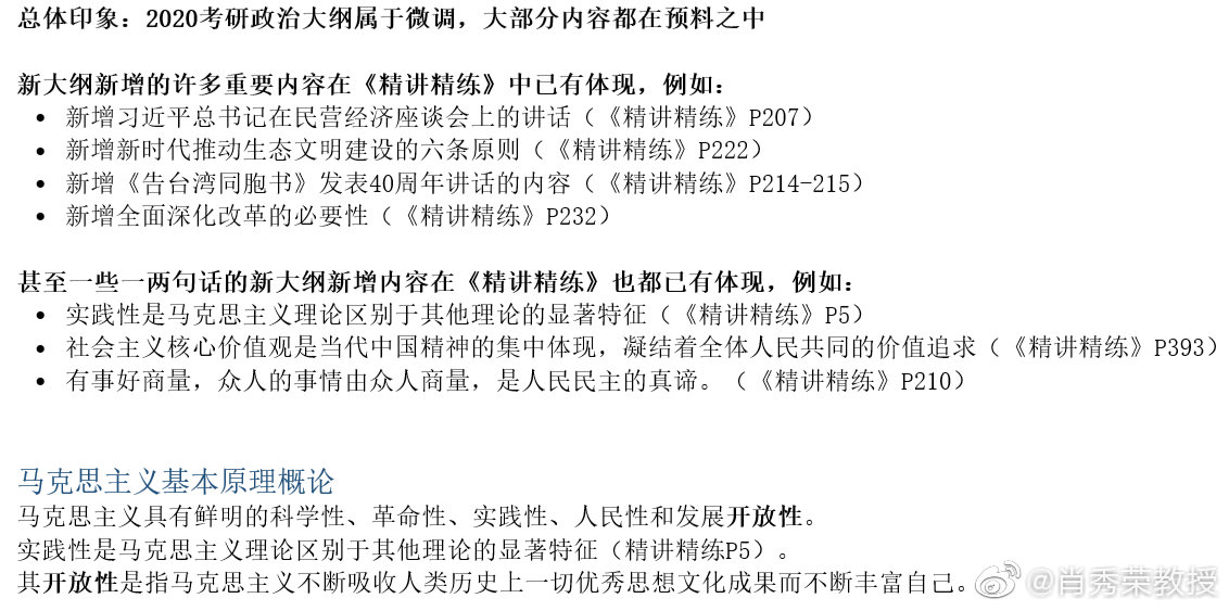 肖秀榮精心解讀:2020研究生考試政治大綱變化