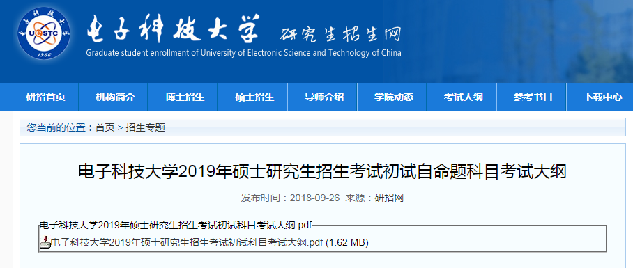 以上就是“電子科技大學2019年碩士研究生招生考試初試自命題科目考試大綱”的全部內容!祝你考研成功!