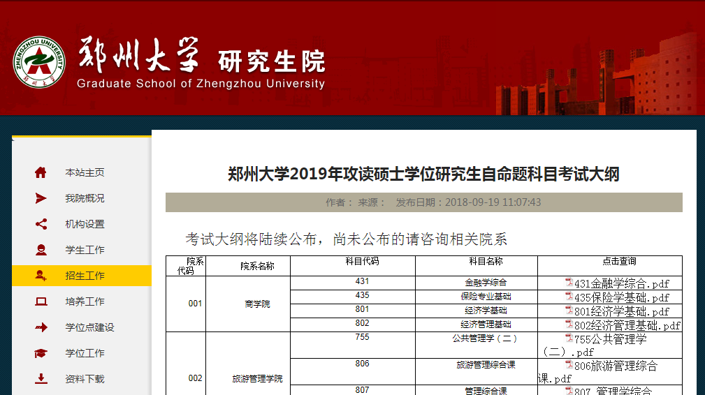 考試大綱不僅能給你一個復習的方向,還能幫助你梳理整個知識脈絡,方便記憶。今天,小編給大家帶來“鄭州大學2019年攻讀碩士學位研究生自命題科目考試大綱”,報考鄭州大學的同學這里看!