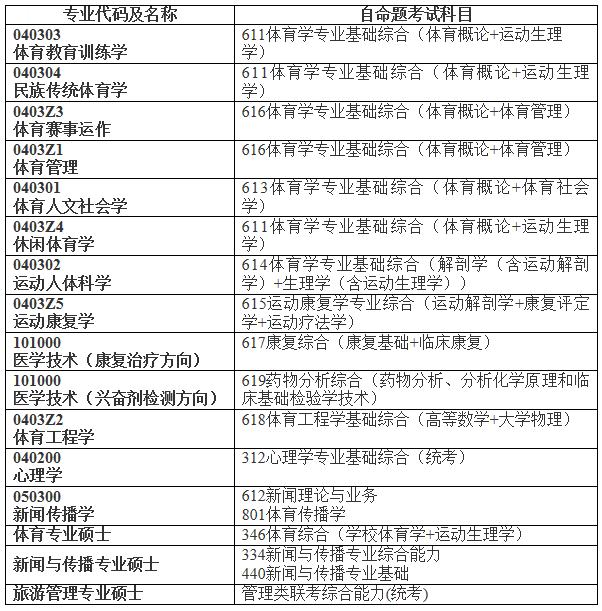 經學校研究生招生領導小組決定,2020年上海體育學院碩士研究生全國統一招生考試自命題考試科目和大綱如下: