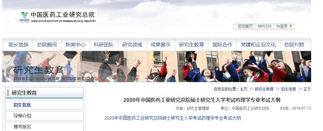 【點(diǎn)擊查看】2020年中國(guó)醫(yī)藥工業(yè)研究總院碩士研究生入學(xué)考試藥理學(xué)專業(yè)考試大綱
