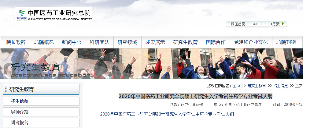 中國醫藥工業研究總院日前在官網發布了2020年碩士研究生考試大綱,今天小編整理了“2020年中國醫藥工業研究總院碩士研究生入學考試生藥學專業考試大綱”的相關內容,希望能對有報考意愿的小伙伴有所幫助!