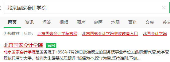 首先,在瀏覽器搜索“北京國家會計學院”,找到官網。