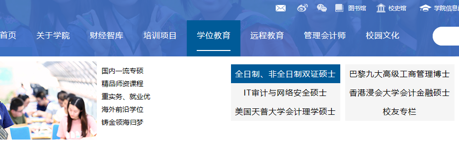 下一步,找到網站中的“學位教育”欄目。各院校的網站欄目名稱并不是相同的,大家在查找信息的時候要注意仔細尋找相關欄目。