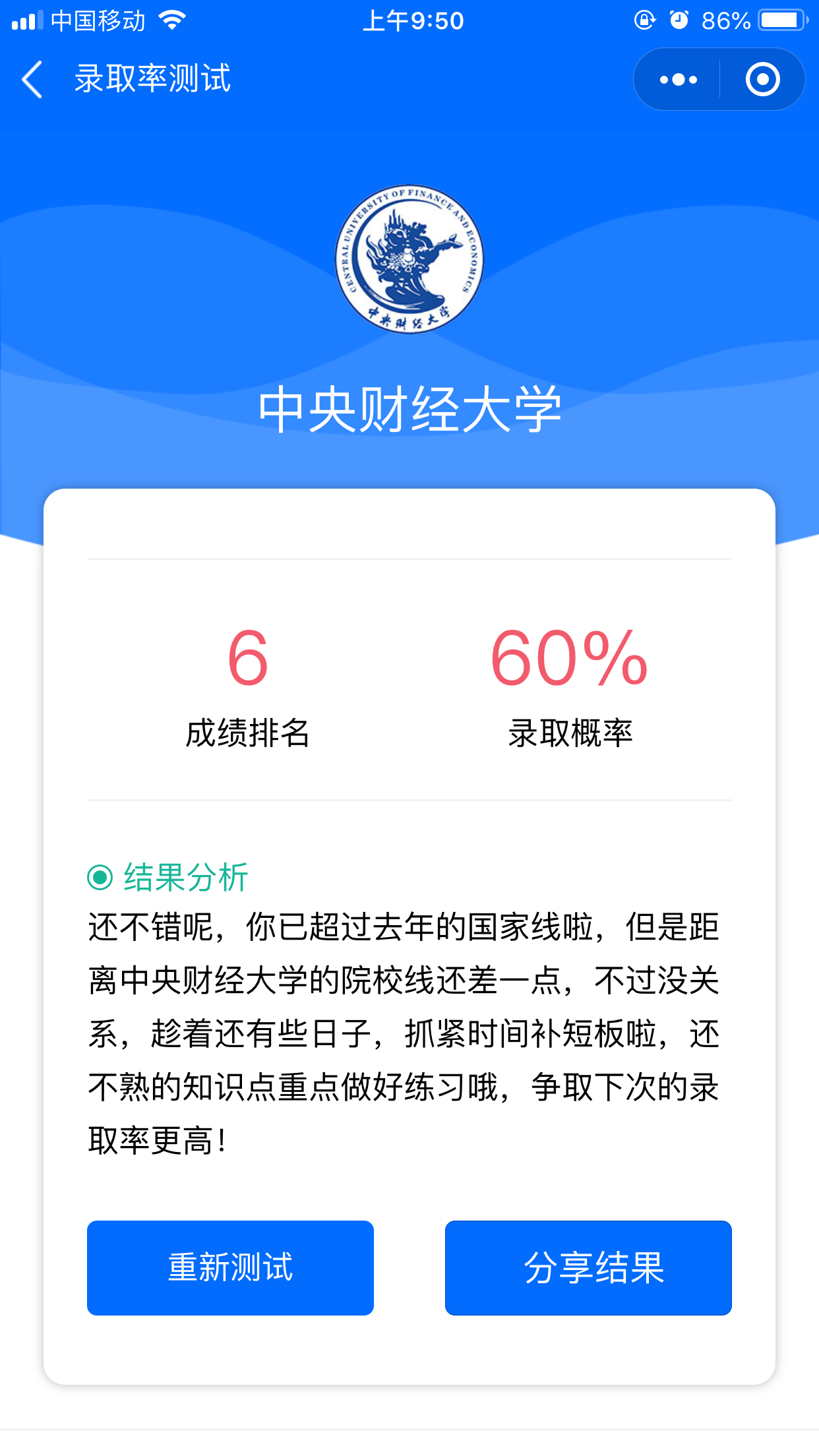 亮點四:錄取率測試,確定了目標院校,接下來就要知道與目標院校的差距有多少了!
