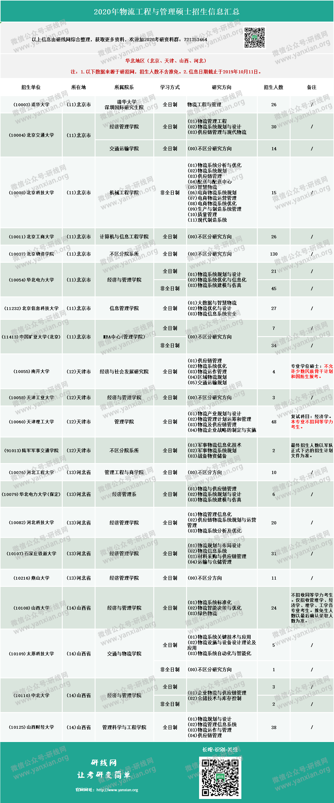 以上就是小編整理的“物流工程與管理碩士(125604)2020年開始招生應屆生了!”的相關內容,祝大家考研成功。