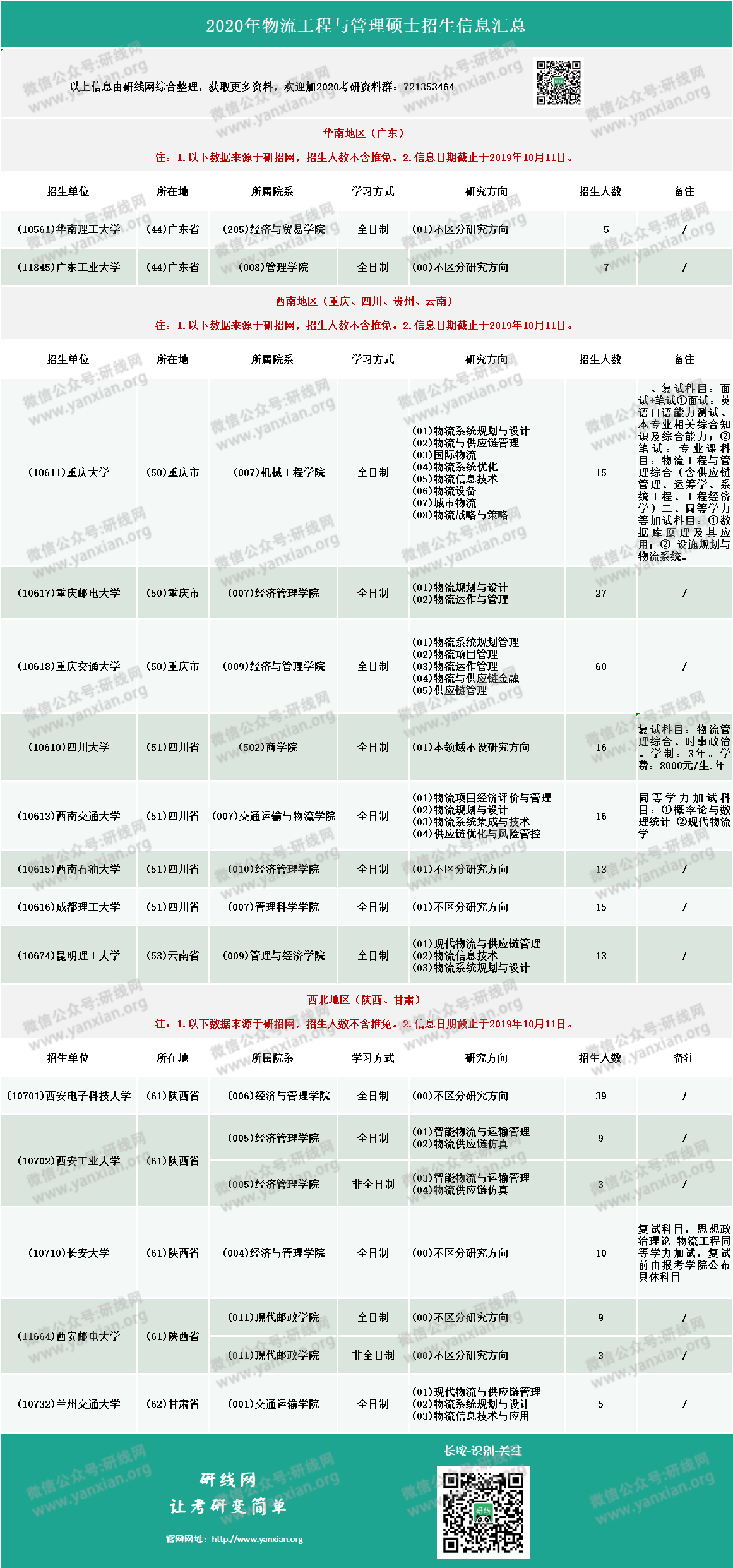 2020年共有90所院校(研招網的數據)是招收物流工程與管理專業,以下是所有院校的招生信息,希望對今年報考的同學有所幫助!