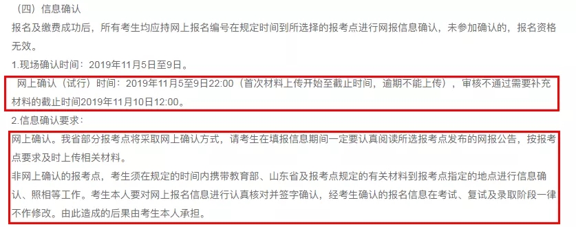 【注意】10月10日-31日正式報(bào)名!正式報(bào)名結(jié)束并成功繳費(fèi)的同學(xué)就可以進(jìn)行下一步現(xiàn)場(chǎng)確認(rèn)或網(wǎng)上確認(rèn)材料的準(zhǔn)備了。各省市現(xiàn)場(chǎng)確認(rèn)和網(wǎng)上確認(rèn)所需材料有著一些特殊要求,大家還是提前準(zhǔn)備較好!