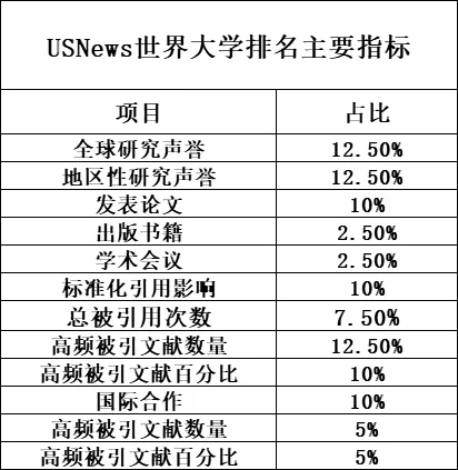 今年USNews世界大學(xué)排名主要指標如圖所示