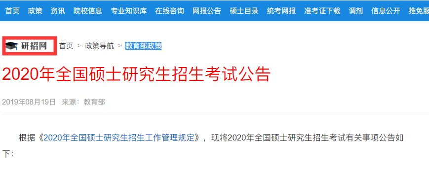 以上是研線網匯總的:“研招網已公布2020年全國碩士研究生招生考試公告”希望對你有幫助!