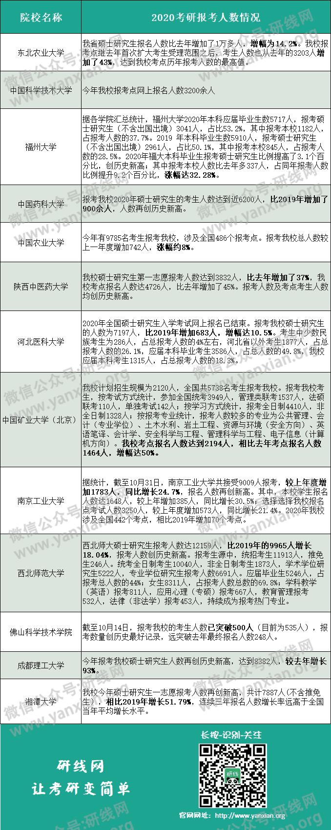 以上院校官方公告詳情:已公布2020考研報考人數的院校
