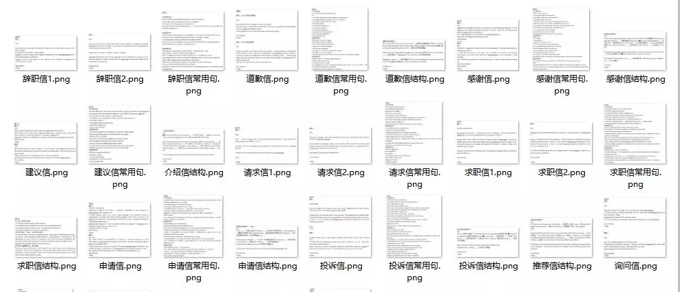 小作文一般為應用型短文,具體有請求信、建議信、投訴信、感謝信、道歉信、推薦信、求職信辭職信等內容。