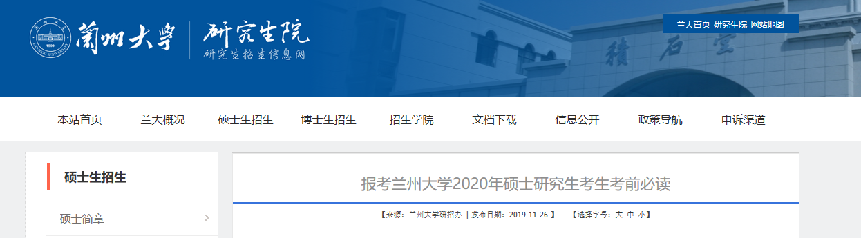 歡迎報考蘭州大學2020年碩士研究生!現將與考試相關的注意事項予以提醒。請在考試前仔細閱讀以下考試須知,這會對您有所幫助。
