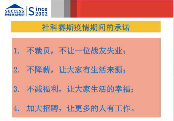 疫情當前,社科賽斯不負學員期望,積極開展線上直播課程,助力學員考研成功;不讓學員擔心,第一時間致信學員,表明不拖延、不縮水的信心。服務學員,傾盡全力,保證線上上課質量不打折扣,其中身為黨員的老師們,義無反顧地選擇返回崗位,立足本職,做起了疫情下的“逆行者”,奮斗在一線,傾力付出,做考研學子的堅強后盾,努力幫助學員實現的名校夢。