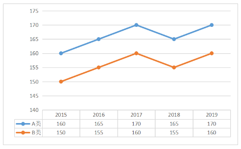 總體來說,近五年國家線增減在10分左右,每年國家根據(jù)當(dāng)年考試情況增5分或者減5分。