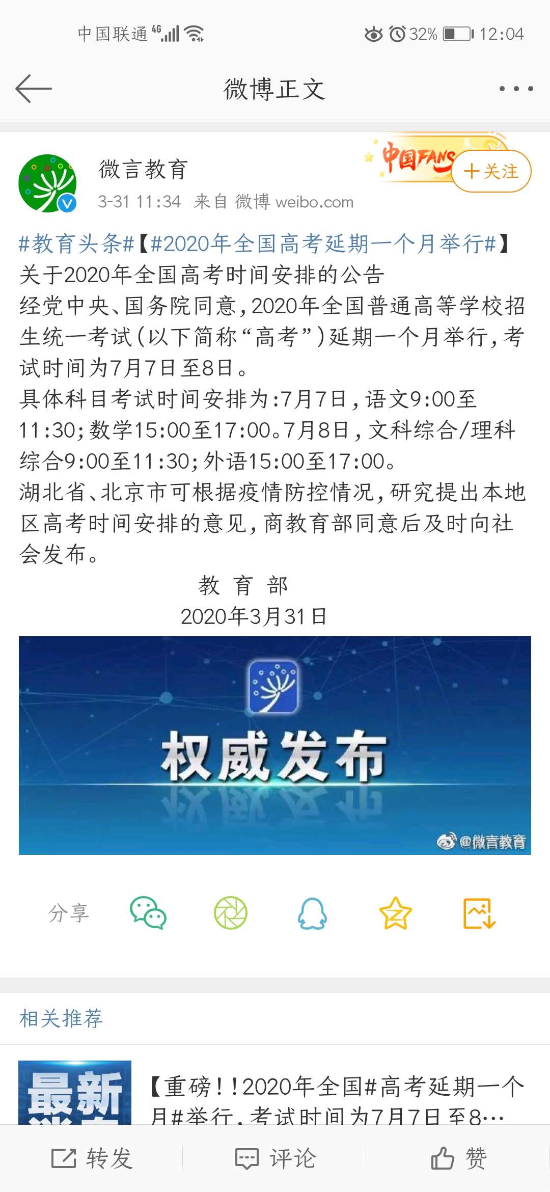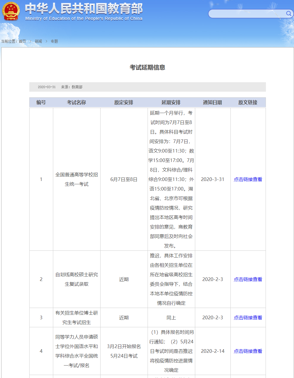 3月對于考生來說是煎熬的一個月,考生們關注的“高考是否延期”,“考研國家線公布時間眾說紛紜”,終于3月末都有了答案。