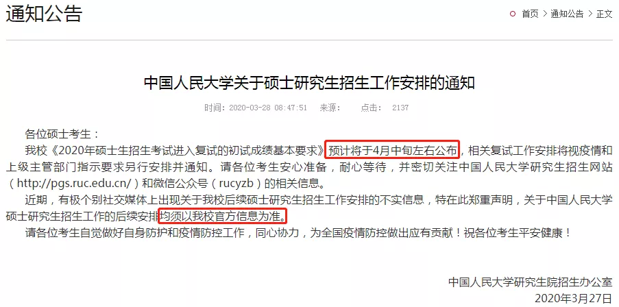 公布時間早于其他院校
