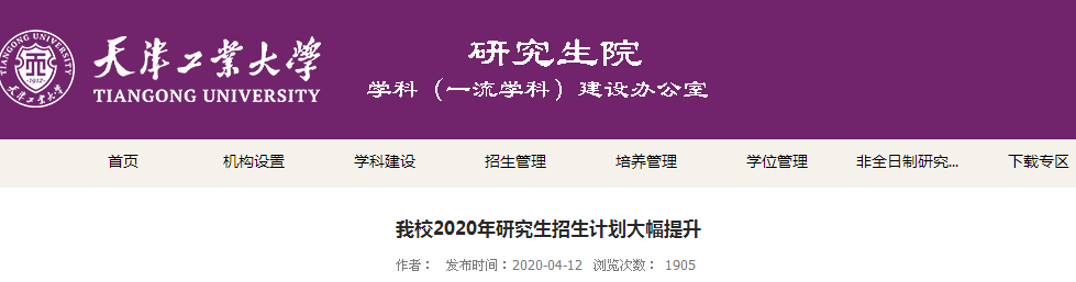 以上就是“天津工業(yè)大學(xué):我校2020年研究生招生計劃大幅提升”的全部內(nèi)容!,更多考研擴(kuò)招信息,關(guān)注我們!