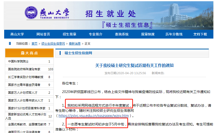 按照教育部要求,該校復試啟動時間原則上不早于4月30日,預計在5月中旬,最終以學科建設(shè)與研究生管理處官網(wǎng)公布的復試方案為準。該校主要考慮網(wǎng)絡(luò)遠程復試。