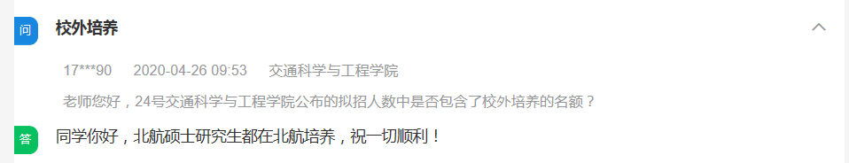 ?問:老師您好,24號交通科學與工程學院公布的擬招人數中是否包含了校外培養的名額?