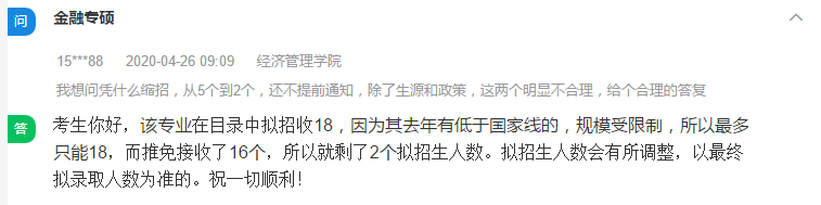 問:我想問憑什么縮招,從5個到2個,還不提前通知,除了生源和政策,這兩個明顯不合理,給個合理的答復。