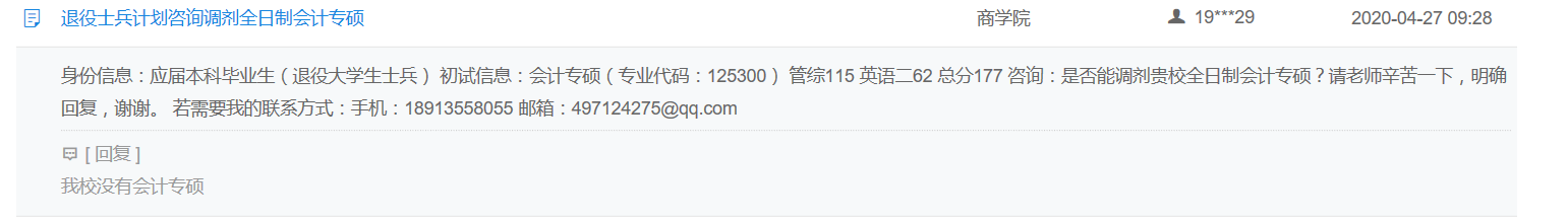 回答:我校會計學是學碩,不接受專碩調(diào)劑