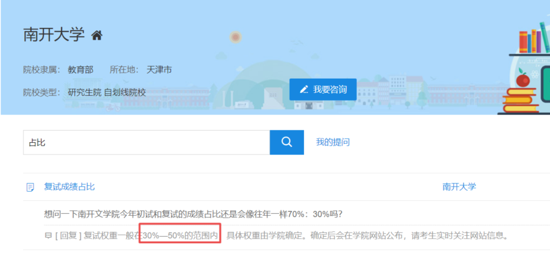 南開(kāi)大學(xué):復(fù)試權(quán)重一般在30%-50%之間。