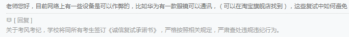 問:老師您好,目前網(wǎng)絡(luò)上有一些設(shè)備是可以作弊的,比如華為有一款眼鏡可以通訊,(可以在淘寶旗艦店找到),這些復(fù)試中如何避免