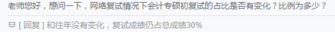 問(wèn):老師您好,想問(wèn)一下,網(wǎng)絡(luò)復(fù)試情況下會(huì)計(jì)專(zhuān)碩初復(fù)試的占比是否有變化?比例為多少?