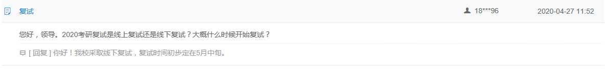 復試階段就是要打好信息戰(zhàn),研招網的院校在線答疑可以去提問自己感興趣的問題,時刻關注自己的目標院校和調劑院校,不能有松懈。
