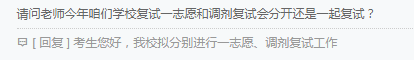 問(wèn):請(qǐng)問(wèn)老師今年咱們學(xué)校復(fù)試一志愿和調(diào)劑復(fù)試會(huì)分開(kāi)還是一起復(fù)試?