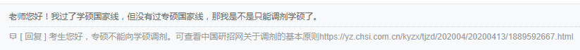 問(wèn):老師您好!我過(guò)了學(xué)碩國(guó)家線,但沒(méi)有過(guò)專碩國(guó)家線,那我是不是只能調(diào)劑學(xué)碩了。
