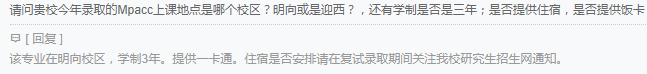 問(wèn):請(qǐng)問(wèn)貴校今年錄取的Mpacc上課地點(diǎn)是哪個(gè)校區(qū)?明向或是迎西?,還有學(xué)制是否是三年;是否提供住宿,是否提供飯卡